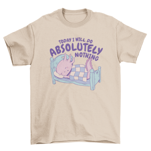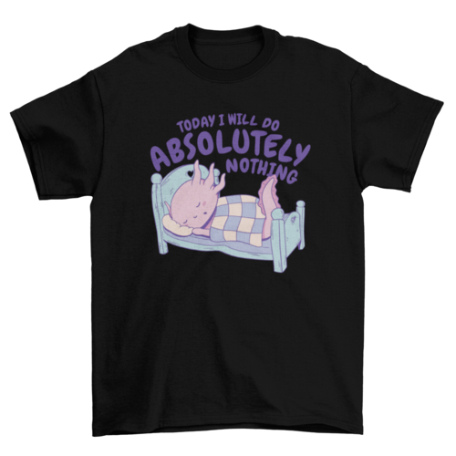 Cute Axolotl sleeping on a bed with "Today I will do absolutely -